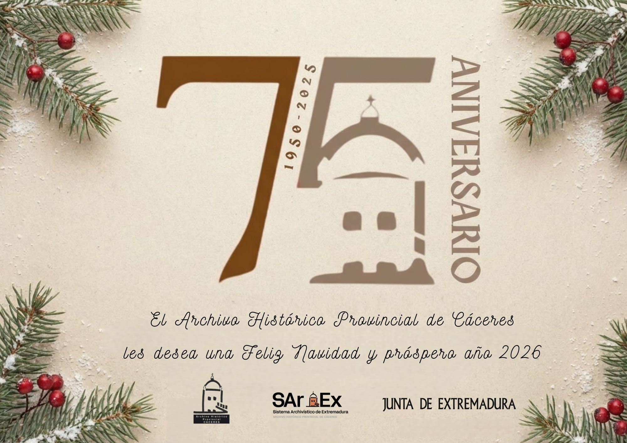 El Archivo Histórico Provincia de Cáceres les desea una Feliz Navidad y un próspero año 2026.