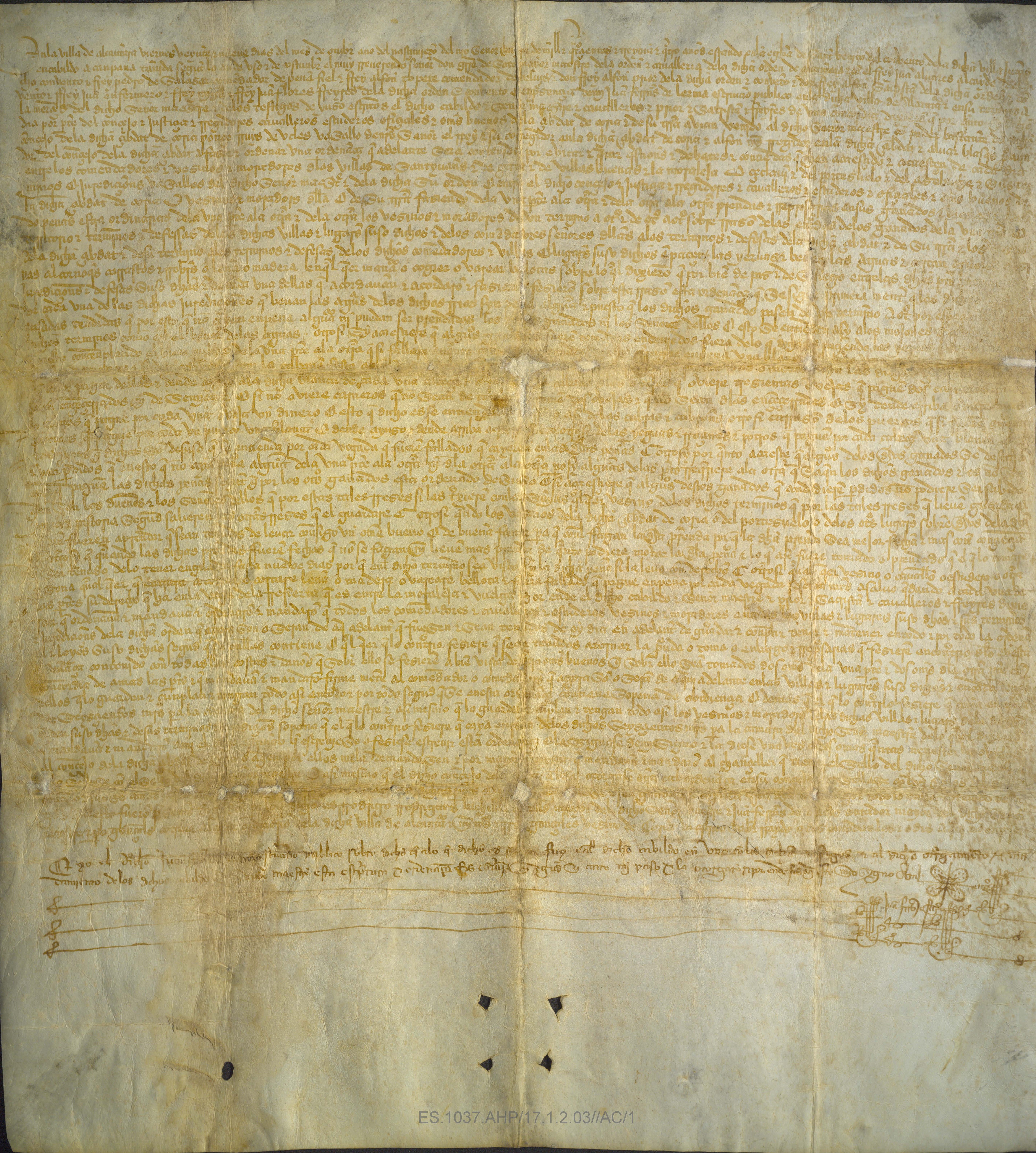 Ordenanzas entre el maestre de la Orden de Alcántara y el Corregidor de Coria sobre los montes, ganados, hierbas, aguas y demás aprovechamientos de la ciudad de Coria.