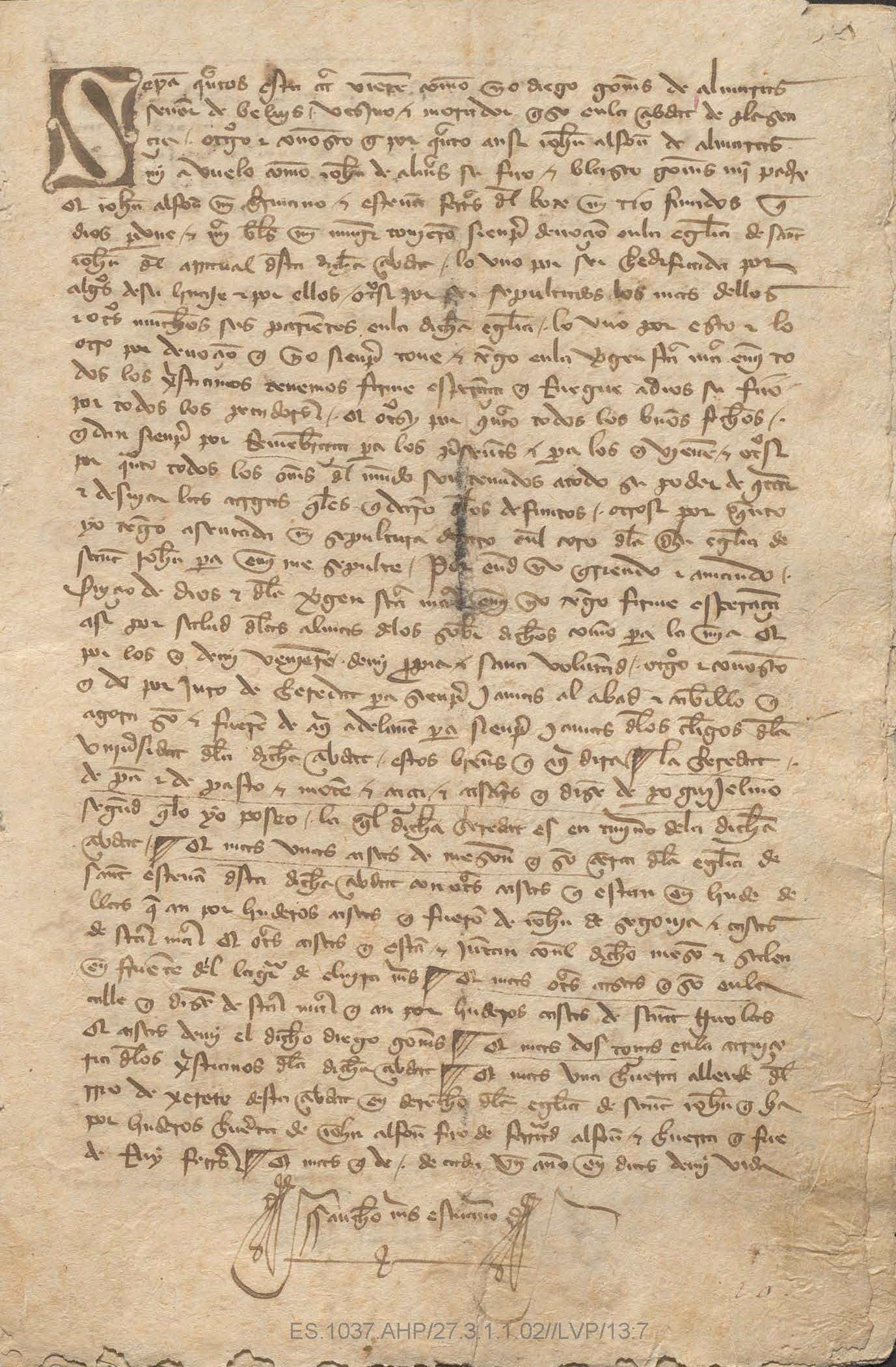 Escritura de reconocimiento de censo sobre una casa otorgada por los frailes del Monasterio de Santa María de Guadalupe, Alfonso de la Rambla y Fray Alfonso de Valladolid.
